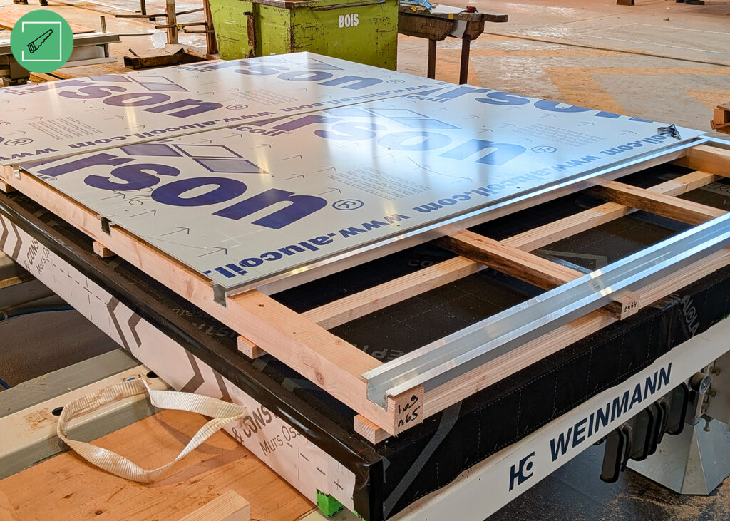 A l’a-bardage ! Notre fournisseur ALUCOIL nous a livré les panneaux de bardage aluminium Larson® sélectionnés par le client et usinés par nos voisins de la société CASSAJUS.